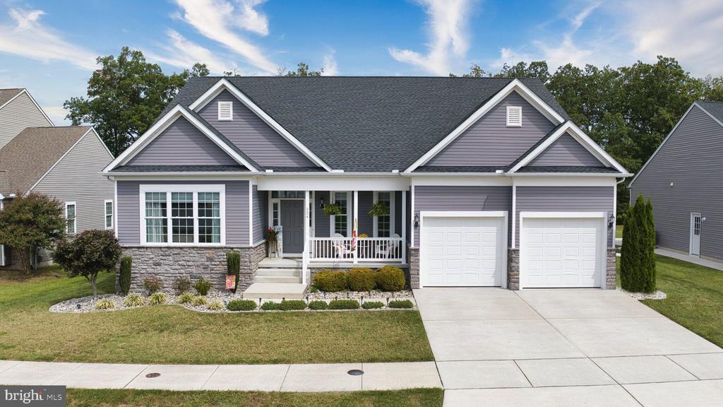 Custom-built and loaded with upgrades, this 3-bedroom, 2-bathroom home in the sought-after community of Lighthouse Estates in Milford offers the best of single-level living. Designed with an open concept, the living room with custom fireplace flows seamlessly into the gourmet kitchen featuring granite countertops, bar seating, double wall ovens, gas cooktop, built-in microwave, and premium vinyl plank flooring throughout. The kitchen also includes a bright breakfast nook and opens to a spacious sunroom with wooded and water views—perfect for relaxing year-round. The enlarged primary suite is a private retreat with a spacious walk-in closet, whirlpool tub, walk in shower, and a luxurious quartz vanity countertop. Both bathrooms in the home feature elegant quartz vanity countertops, adding a touch of modern style and durability. An office space, two additional bedrooms, and a basement enhance the home's functionality. The basement boasts 9-foot ceilings and epoxy floors, providing a versatile space that is heated and air-conditioned. It includes a full bath and a deep sink rough-in, making it ideal for a workshop, home gym or movie room. A convenient staircase from the basement leads directly to the garage, adding to the ease of access. Set on a premium lot backing to peaceful woods, the property also features a fenced backyard, covered front porch, concrete driveway, Amish-built shed, and two-car front-entry garage. With low HOA fees, Lighthouse Estates offers quiet living just minutes from downtown Milford, Bayhealth Sussex Campus, Route 1, and a short drive to Delaware’s beaches.