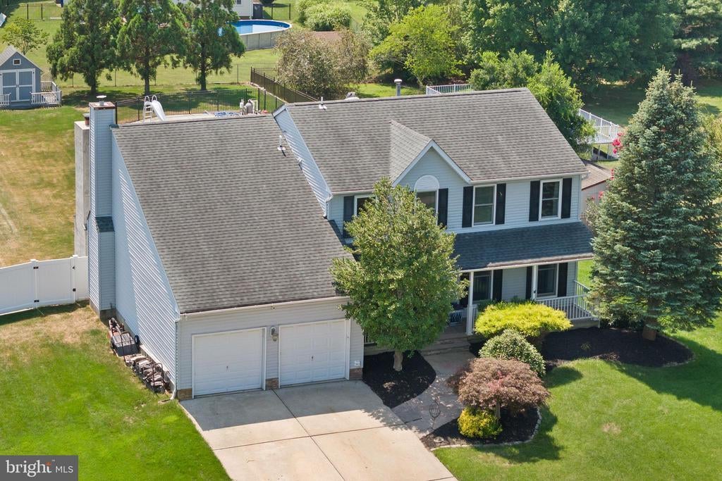 Welcome to this desirable 4-bedroom, 2 full and 2 half bath Colonial home in the highly sought-after Holloway Meadows neighborhood in Bordentown. Move-in ready and designed for entertaining, this home is situated on almost 1/2 acre lot with features inside and out that are sure to impress. Step onto the charming front porch and stone walkway leading into an open entryway with bamboo wood flooring that flows throughout the home. The spacious living room boasts crown molding and wainscoting, while the formal dining room is highlighted by a tray ceiling and chair rail. The gourmet kitchen is a chef’s and entertainer’s dream with Thomasville cabinets, granite countertops, stainless steel appliances, recessed lighting, ceiling fan, and textured ceiling. Just off the kitchen, the step-down family room offers plantation shutters, crown molding, wainscoting, and a wood-burning stove with stone hearth perfect for those chilly winter days. Enjoy year-round gatherings in the enclosed all-seasons room, complete with stone accent wall, wood-burning fireplace, two ceiling fans, dry bar and slider leading to a Trex deck w/dedicated natural gas line for all of your grilling needs. Step down onto your paver stone walkway leading to your backyard oasis featuring a 16,000-gallon in-ground saltwater pool with 34’ seating wall, sliding board, bluestone seating area, aluminum fencing, and wireless outdoor speakers—perfect for summer entertaining. Upstairs, the primary suite boasts vaulted ceilings, a walk-in closet, and an ensuite bath with subway-tiled walk-in shower, rainfall shower head, dual vanities, plantation shutters, and a large linen closet. Three additional bedrooms with ceiling fans and ample closet space, plus a full updated hall bath, complete the second level. The fully finished basement with half bath offers additional living space. Additional highlights include solar panels for energy efficiency, a new hot water heater, and a newer high efficiency furnace and two-car attached garage. Take advantage of all the area has to offer, shopping, dining and parks. Conveniently located near Routes 130, 206, NJ & PA TPKS, 195, 295 and MDL Joint Base makes for easy commuting. This home truly combines comfort, style, and convenience—ready for its next owners. Schedule your private tour today!
