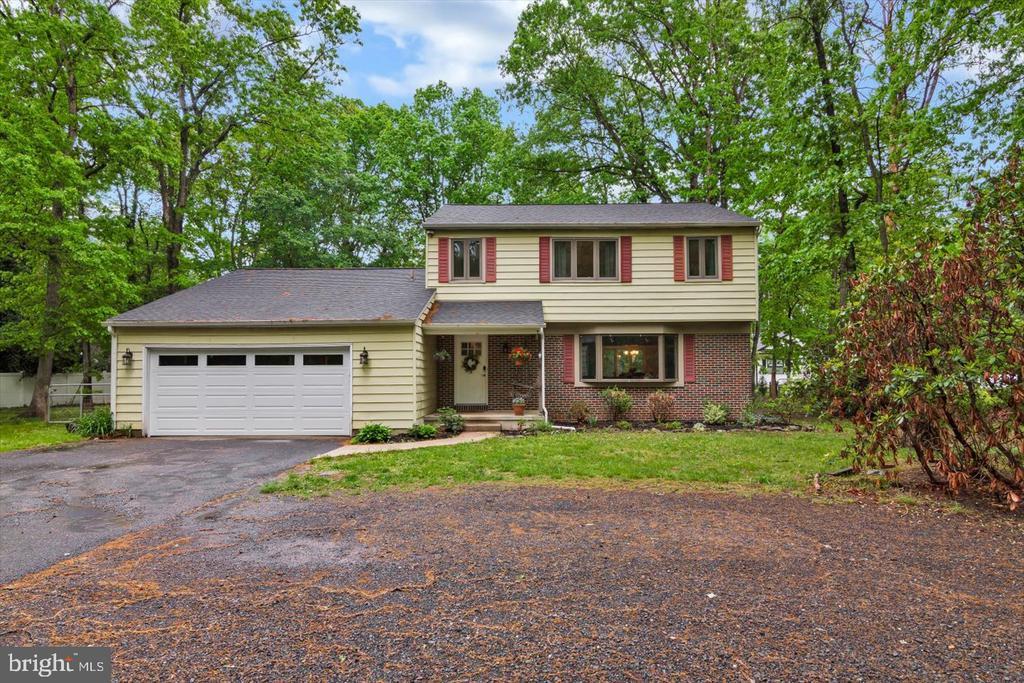 Near…yet far away! Mother Nature welcomes you to this country retreat with modern style, nestled on nearly two acres of wooded splendor. This inviting home offers the perfect balance of privacy and neighborhood connection. Whether you value peaceful solitude or enjoy hosting friends and family, this home delivers the best of both worlds. A circular driveway extends a welcoming introduction and a covered front porch leads the way. Step inside and be greeted by rich, dark wood flooring and oversized windows, that capture the outdoor serenity and fill the home with natural light. The spacious layout flows seamlessly, starting with a large living room that connects to a generous dining area and beautifully updated kitchen — ideal for entertaining and everyday living. The kitchen is the true heartbeat of this home…featuring crisp white cabinetry, stainless steel appliances, a pantry, and a center island with seating for four, and still plenty of space to prepare your culinary creations! An exposed brick accent wall adds warmth and character, harmonizing the white tile backsplash and sophisticated lighting. Just off the kitchen, a bright family room offers sliding doors to the backyard patio and uninterrupted views of nature. The powder room and laundry room complete the first floor. Upstairs, dark wood flooring continues throughout four spacious bedrooms. The primary suite offers tranquil backyard views and a designer-inspired ensuite bath. The additional bedrooms share a renovated hall bath, featuring a dual-sink granite vanity, tub/shower, ceramic plank tile flooring, and ample storage. Venture down to the lower level, where an unfinished basement awaits your complements. Additional noteworthy features include a newer septic and roof. Conveniently located with easy access to Routes 206/295, Joint Base McGuire-Dix-Lakehurst, and the Jersey Shore, this home is a perfect blend of cozy country charm and stylish, modern living. A structural defect was discovered. The Sellers had repairs made by a licensed professional, in accordance with the evaluation by a structural engineer and Township approval in September 2025. Mold remediation was professionally completed in August 2025. Sellers will NOT be responsible for any further repairs. Buyers should make their offer accordingly. Sellers will only be responsible for the Township CCO.