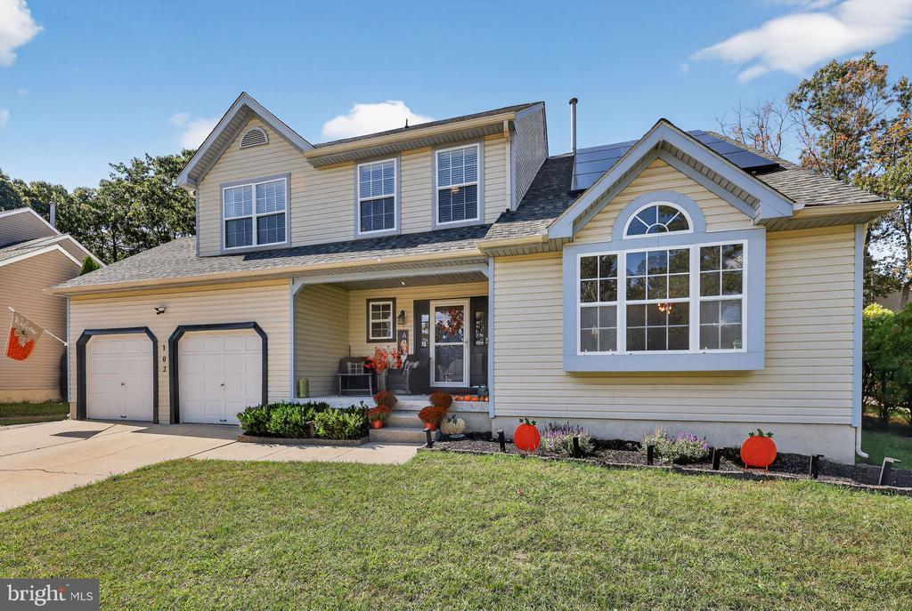 Welcome to 102 Annapolis Drive, a beautifully maintained Colonial in the sought-after Wye Oak community. This spacious two-story home offers over 2,100 sq. ft. of above-grade living space, plus a fully finished basement that expands the possibilities for entertaining, fitness, and relaxation. Step inside to a dramatic vaulted open-concept dining and living area, enhanced by oversized windows that fill the space with natural light. The kitchen features updated granite countertops, ample cabinetry, a new dishwasher, and a seamless flow into the family room and backyard, creating the perfect hub of the home. Upstairs, the cathedral-ceiling primary suite is a true retreat, complete with dual walk-in closets and a stunning updated bath. Enjoy the spa-like atmosphere with a walk-in shower, soaking tub, and stylish double vanity. Three additional bedrooms and a second full bath provide plenty of flexibility. The finished basement is designed for both fun and function, offering a wet bar, exercise room, large bonus space, and a versatile recreation area. Outside, the property includes a charming front porch, a spacious deck overlooking the yard, and a two-car garage on a .22 acre lot. Additional value comes from the solar panels, which currently produce 100% of the home’s energy use—bringing efficiency and peace of mind. With thoughtful upgrades throughout—including modern baths, open-concept living, and a full array of finished spaces—this home is move-in ready and combines comfort with style.