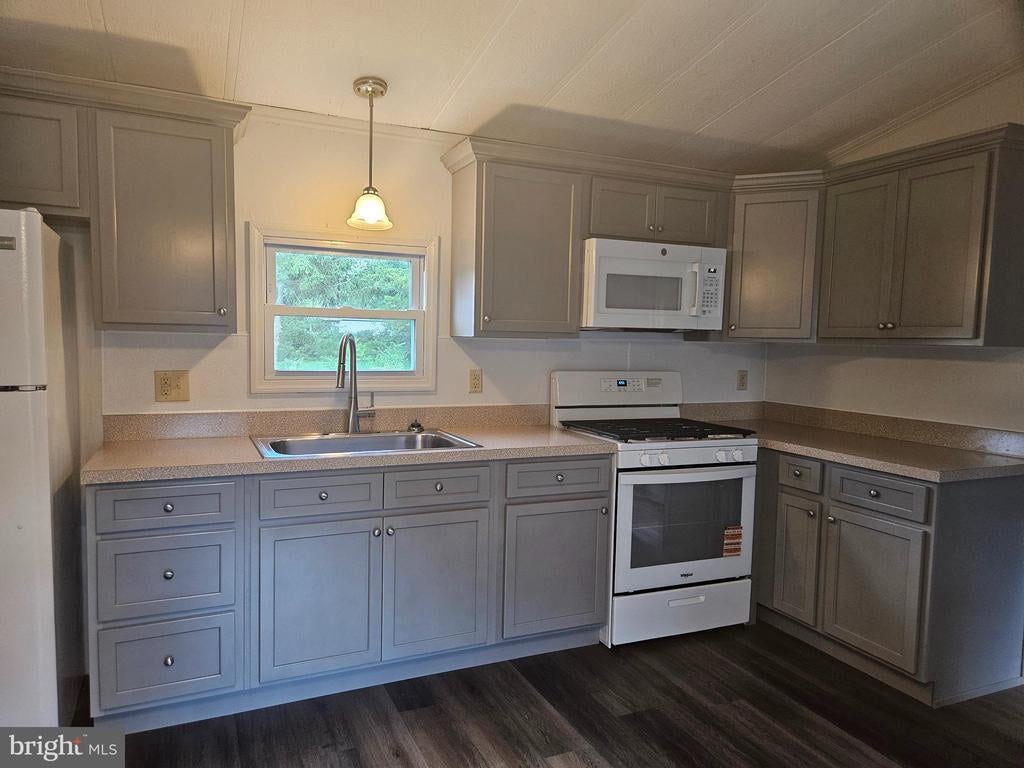 Seller has just put the finishing touches on the new kitchen and the freshly painted interior. New kitchen cabinets and counter, new range, new microwave, newer refrigerator and remodeled dining area. Updated 31 X 10 deck gives you access to the home which has an open floor plan. The main bedroom offers a walk in closet and full bath. The second bedroom also includes a full bath. Easy access to half bath from third bedroom. Laundry area offers a washer and dryer in as -is condition. Private 1/2 acre lot, garage in front of lot is NOT included in the rent. Tenant is responsible for lawn care, snow removal and their utilities. Each applicant over 18 must submit the rental application and NTN report. 1.5 months security deposit, no smoking, no pets and maximum occupancy of 4.