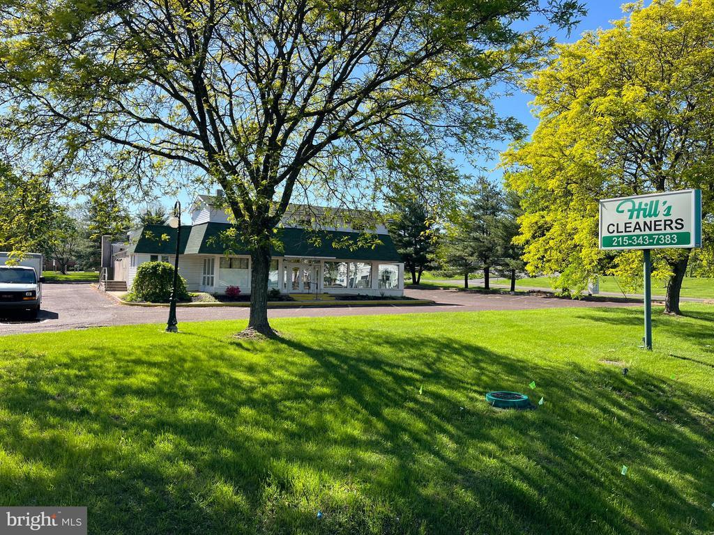 Large, solid building on 1.16 level acres at lighted intersection with a drive-thru. Traffic count 44,000. 30+ parking. Former Hill's Cleaners. Located right in front of Warrington Township Building. BZ zoning allows for many uses - please find these attached. Open floorplan allows for many uses. Loading door in rear.