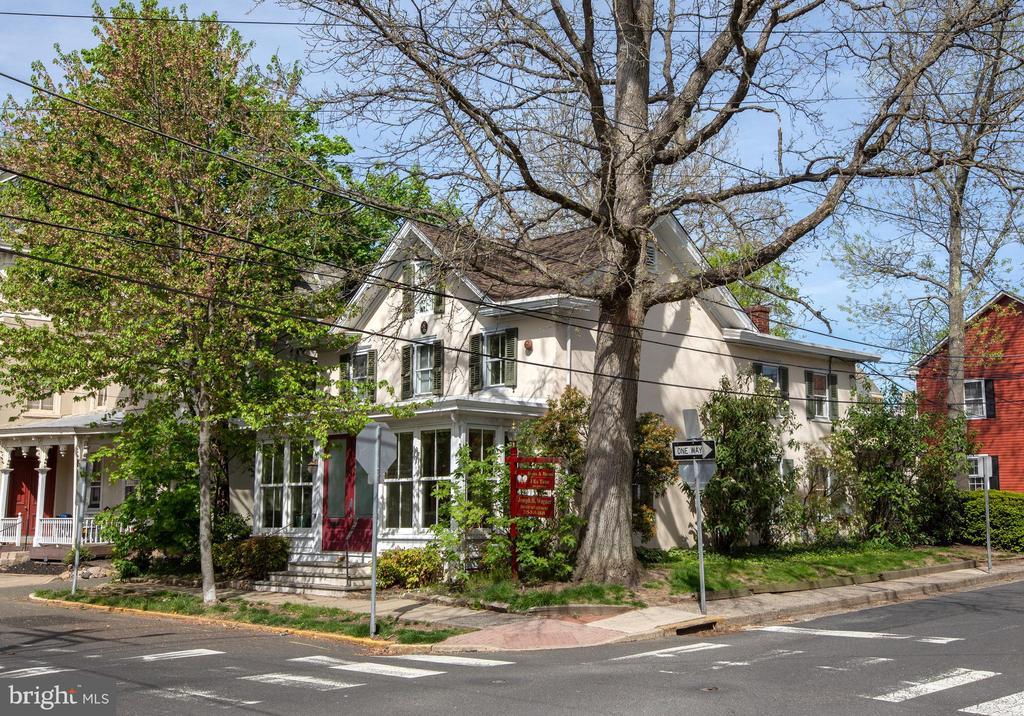 The Edward Heston House: dating back prior to 1845, this plaster-over-stone building is listed on the National Register of Historic Places and currently features a charming two bedroom dwelling in combination with a business but would also make a perfect full-office conversion (consult zoning ordinances available online). Located directly in (not adjacent to) the center of downtown Doylestown, enjoy immediate walking access to the shopping district, County Theater, Michener Museum, and restaurant row. Original wide plank pine floors, deep set windows and custom built ins throughout, enter through the bright due-South facing Sunroom with oversized windows, perfect for any plant lover and a great spot to sit and people watch. The main level includes a large home office/meeting room which can double as a dining room, a formal living room and full kitchen with back entrance from the ample paved parking lot (room for easily 4-6 vehicles). The private back yard features a stone terrace area, stands of mint and blueberry and quince bushes, and an attached shed/storage structure. Looking for more space? The existing footprint could offer a great opportunity to expand the upper floors and create something customized to your liking. New roof, H/W heater, newer Central AC and minisplit, radon remediation system, partial exterior CCTV and security system ready, etc. Consult Borough Zoning online for explanation of dwelling-in-combination and other potential uses by right.