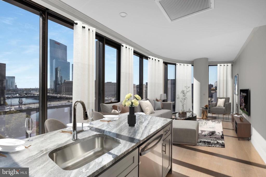 Experience the epitome of LUXURY LIVING at 2301 JFK, Philadelphia's premier ALL-GLASS residential tower. This south/west-facing, 2-bedroom, 2-bath apartment offers BREATHTAKING VIEWS from sunrise to sunset, encompassing the city skyline, and waterfront.