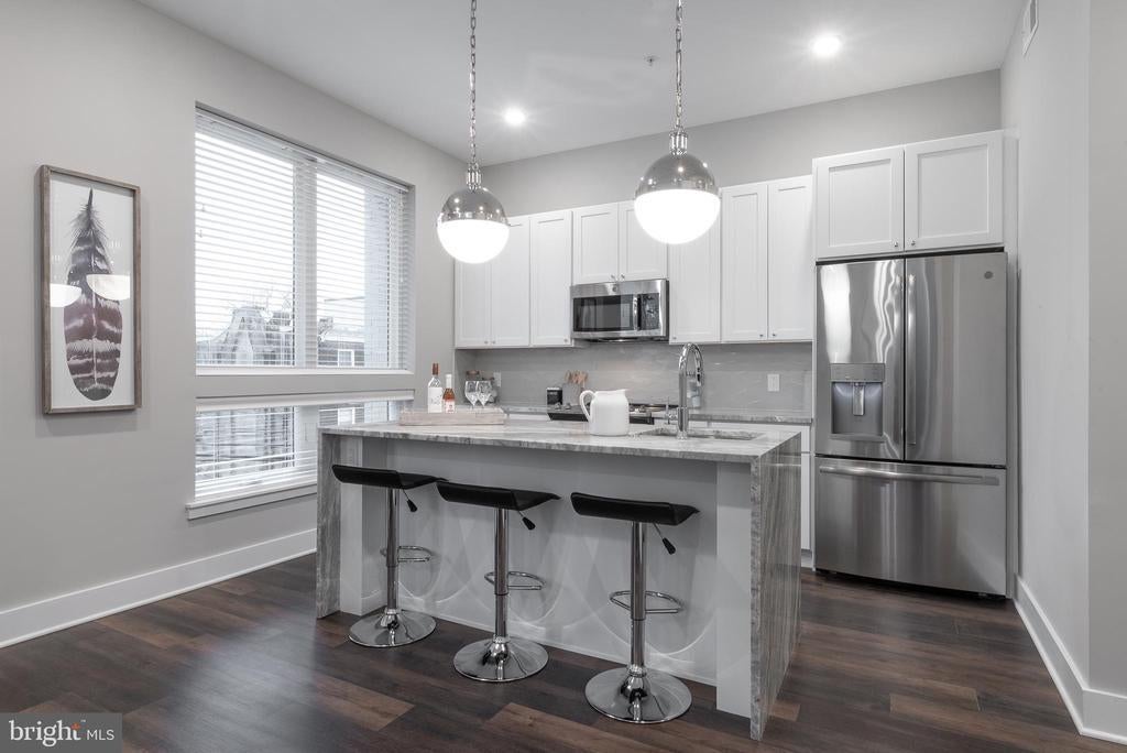Residents of The Gateway can enjoy a fully furnished rooftop deck with stunning views of the Center City skyline. All units feature LATCH keyless entry system, modern quartz countertops, 42-inch white shaker cabinetry, high-end stainless steel appliances, luxury tile selections, custom California-style built-in closets, double sink vanities, glass-enclosed showers, in-unit laundry, and plenty of natural light from the floor-to-ceiling windows.