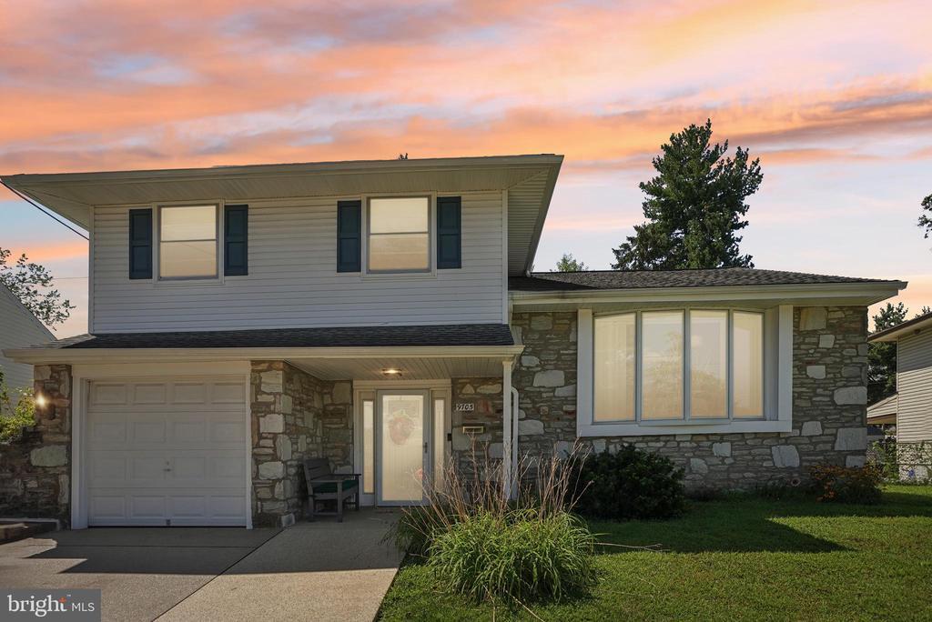 The main level highlights include a large living room with vaulted ceilings, recessed lighting, hardwood beneath the carpet, and a new front window. A formal dining room with chandelier connects seamlessly to the eat-in kitchen—upgraded with new cabinets, new flooring and new appliances, and a bright window overlooking the yard. Upstairs features an updated hall bath. The primary suite offers wood floors, a double doored "jack and jill" closet, and an upgraded private bath with stall shower. Two additional spacious bedrooms with closets and hardwood carpet complete this floor.