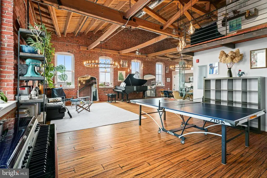 As you step into this top-floor corner unit, you're greeted by an abundance of natural light streaming through expansive windows, highlighting the stunning exposed brick and original wood beams. The open-concept layout is accentuated by high ceilings, hardwood floors, and custom design fixtures throughout creating a sophisticated yet inviting atmosphere.