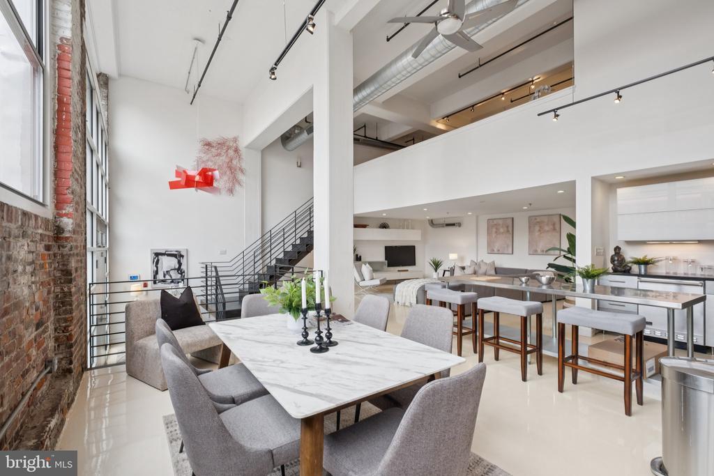 Bright and stylish bi-level loft with deeded garage parking in an unbeatable location! Featuring soaring ceilings, exposed brick and beams, and oversized industrial windows, this home blends character with modern comfort. The open main level includes a sleek kitchen with high-end stainless steel appliances, polished concrete floors, and a full bath with in-unit laundry. Upstairs, the loft bedroom offers bamboo hardwoods, a walk-in closet, and private powder room. With a private entrance, direct garage access, and a Walk Score of 95, you’re steps from the Rail Park, cafes, restaurants, and Center City. Move right in and enjoy the best of city living.
