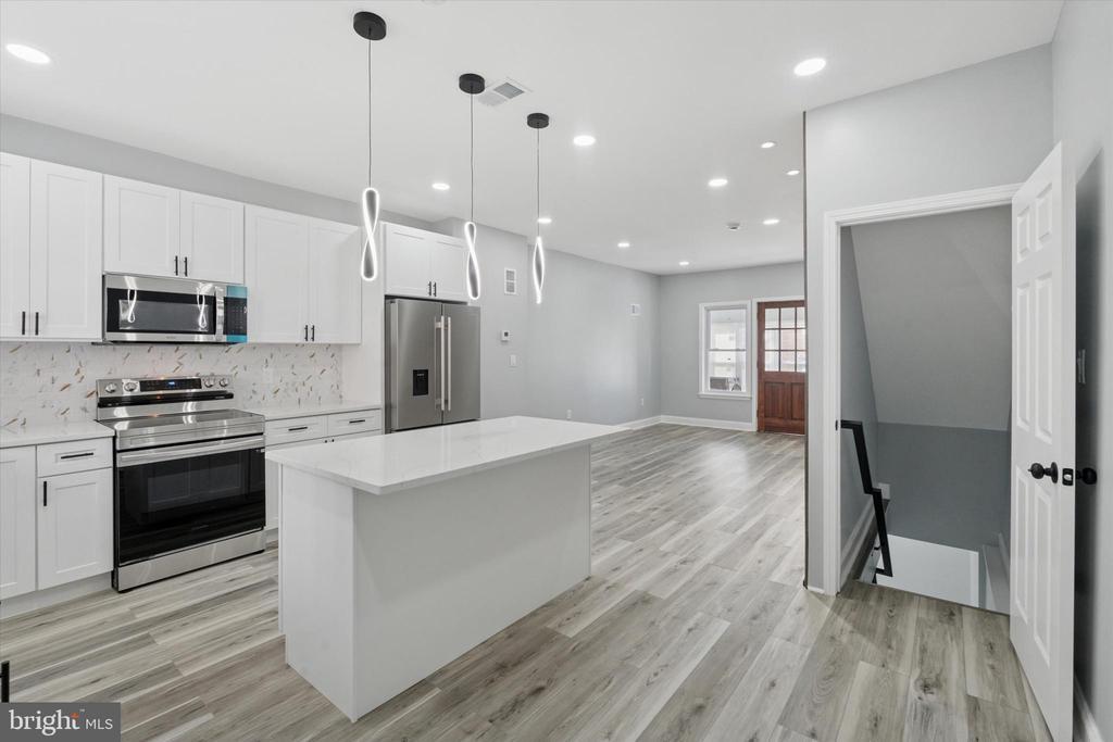 Welcome home to this beautifully updated, 4 bedroom | 2 full bathroom, light-filled contemporary residence! Step inside through a spacious mudroom, the perfect everyday drop zone for coats, shoes, and outdoor gear. From there, the open-concept main level invites you in with hardwood floors, sleek black metal railings, and modern sightlines that create a bright, airy feel throughout. The modern kitchen is a true centerpiece, featuring a chic white design, stainless steel appliances, and a large island ideal for gathering or meal prep. Enjoy easy access to the fenced backyard, perfect for relaxing, entertaining, or letting pets play. Upstairs, you’ll find three comfortable bedrooms and a designer-inspired full bath with floor-to-ceiling tile and a modern vanity. The finished basement expands your living space even further — complete with a full bathroom, making it an ideal guest suite, home office, or fourth bedroom. Located in a vibrant and growing neighborhood, you’ll love being just a short walk from local restaurants, the YMCA, library, Malcolm X Memorial Park, and the Market Frankford Line. With a Walk Score of 85 and Bike Score of 92, this home offers the perfect blend of comfort, convenience, and community. Don’t miss your chance to make this modern gem your home!